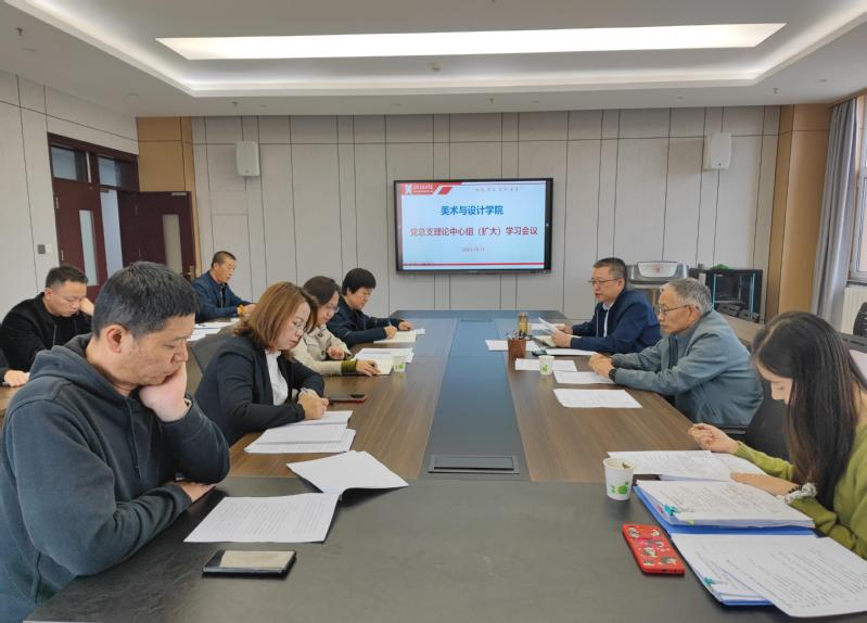 10月11日下午,美术与设计学院在文昌楼719会议室召开党总支理论学习中心组(扩大)学习会,传达学习了党的二十届三中全会精神、习近平总书记在全国民族团结进步表彰大会上重要讲话精神、习近平总书记重要文章《扎实推动教育强国建设》、甘肃省第十四届委员会第六次全体会议精神。副校长李敏骞、列席旁听工作组成员列席旁听,院中心组成员、班子成员、各党支部书记、各系主任以及院行政全体人员参加会议。