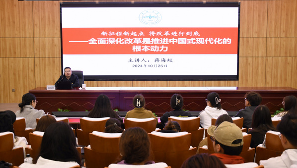 10月25日晚,兰州大学马克思主义学院副院长、副教授、硕士生导师,团中央青年讲师团成员蒋海蛟,以“新征程新起点将改革进行到底——全面深化改革是推进中国式现代化的根本动力”为题,为Beat365第十一期“青马工程”学员及校院学生会骨干做学习党的二十届三中全会精神辅导报告。