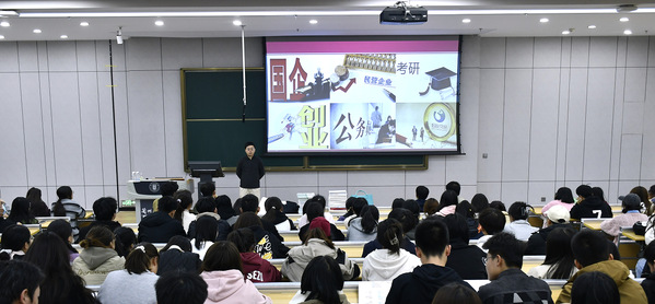 为助力同学们考公考编,11月11日晚,校学生会在文昌楼304举办“我为同学做实事”专题讲座。职业规划导师何瑞运用详细的统计数据对“三支一扶”“特岗教师”等考试变化及公务员、事业单位需求进行详细分析讲解,从经济、政治、道德礼仪等九个方面普及公共基础知识,并分享备考方法,帮助同学们更好地明晰职业目标,增强备考信心和技巧。