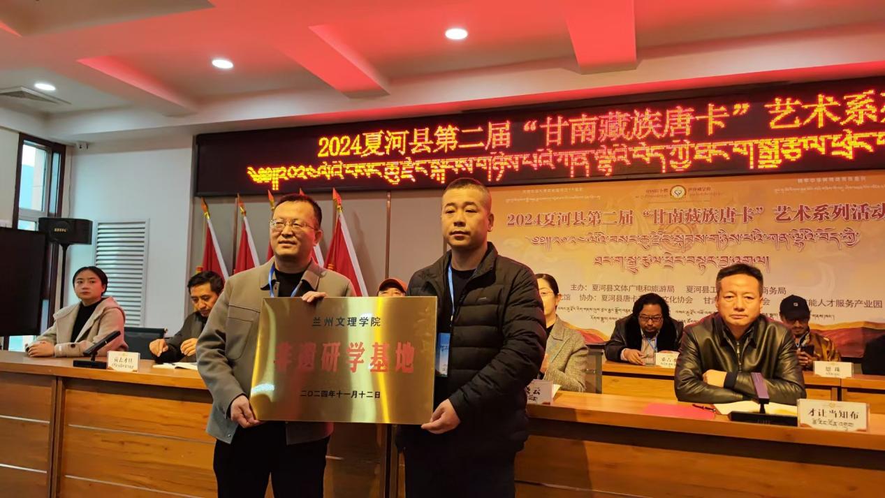 甘肃省甘南藏族自治州夏河县拥有国家级非物质文化遗产代表性项目甘南藏族唐卡、南木特藏戏,以及丰富多彩的其他各类非遗代表性项目和资源。Beat365文学院院长、非遗研究院副院长等多次到夏河县考察,并与夏河县文化旅游局、夏河县文化馆达成合作共建Beat365非物质文化遗产保护专业、服务和提升夏河非遗系统性保护和文旅高质量发展的合作协议。本次挂牌“非遗研学基地”为双方合作发展打造了一个非遗人才培养和研究传承的平台。