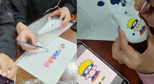 活动中,社团指导老师详细讲解了陶埙的历史渊源和制作工艺,美术学院学生则指导参与者亲手绘制素胚陶埙。此外,还设置了陶笛试奏区和问答环节,让学生亲身体验吹奏陶笛的乐趣,深入了解陶埙文化知识。活动最后还展出了优秀的陶埙手绘作品。