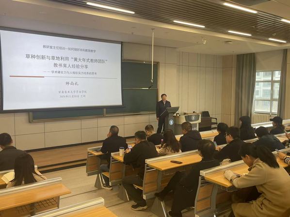 11月18日下午,学校邀请甘肃农业大学黄大年教学团队负责人师尚礼教授做第一讲《草种创新与草地利用“黄大年式教学团队”教书育人经验分享——学术硬实力与人格软实力培养的思考》。师尚礼结合自身多年从事教育教学工作的经历,以自己带领的教学团队为例,从学科平台、教学平台、学生素质能力建设、教师素质能力建设等方面进行了系统讲解,分享了教学团队建设思路与做法。他指出,作为深度参与一线教学的基层教学组织负责人,理应发挥重要作用,成为驱动学科、专业、课程等建设的带头人。