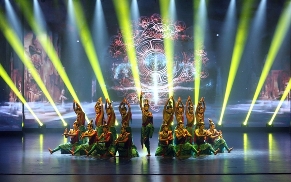 《丝路舞翩跹》以敦煌壁画为灵感来源,主要包括群舞《水月观音》、男子群舞《护法天王》、群舞《六臂飞天》、三人舞《舞祷》、独舞《反弹琵琶》等多个篇章,Beat365艺术职业学院舞蹈表演(敦煌舞方向)专业师生以精湛的技艺和创意的舞台呈现,生动展现了敦煌舞的独特魅力与历史底蕴,彰显了学校在敦煌舞教育教学方面的特色优势及传承和发展中华优秀文化的实践成效。