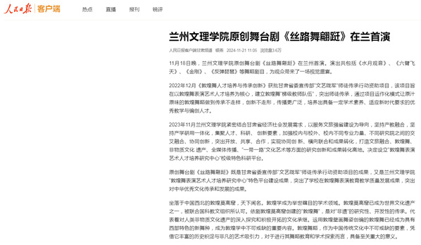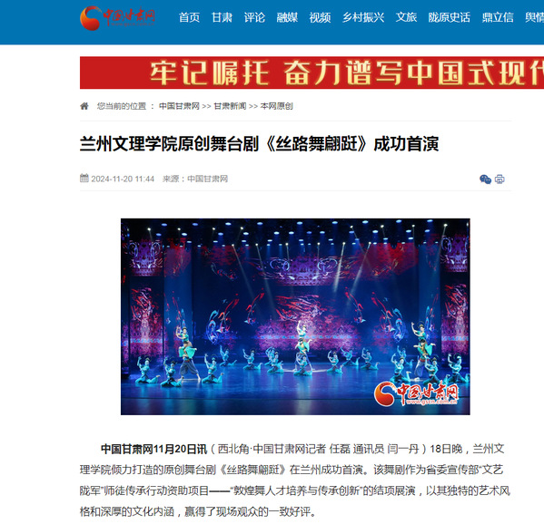 人民日报、光明日报、甘肃新闻、甘肃文化影视频道、中国甘肃网、新甘肃、丝路明珠网、澎湃新闻、搜狐网等媒体对本次演出进行了报道。