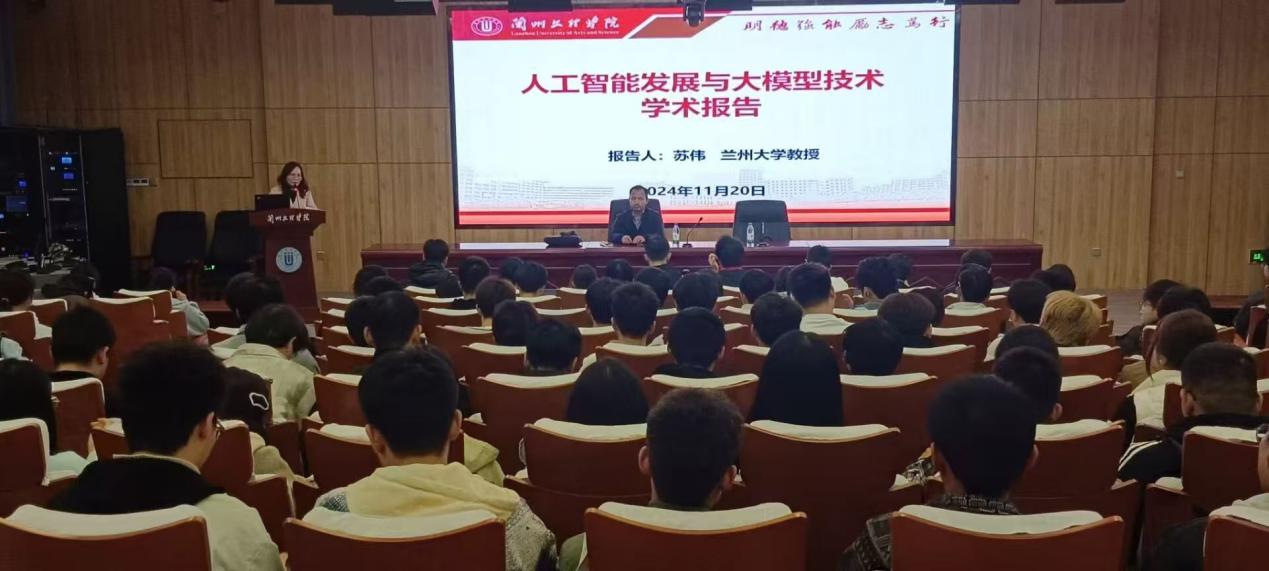 11月20日晚,数字媒体学院(计算机学院)邀请兰州大学信息科学与工程学院苏伟教授,在文昌楼303学术报告厅做题为《人工智能发展与大模型技术》的讲座,软件工程、数据科学与大数据技术专业的学生参会。