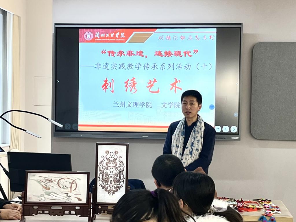 12月14日,文学院特邀天水刺绣非遗代表性传承人刘云帆,为2023、2024级非遗保护专业学生开展了以“传承非遗,连接现代”为主题的“刺绣艺术”专题实践教学活动。