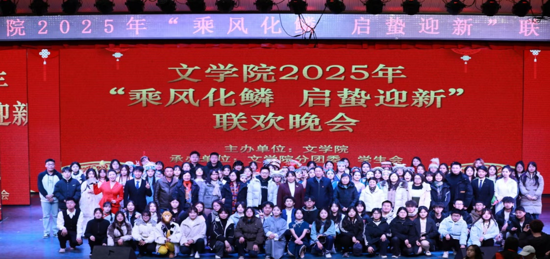 祥龙摆尾辞旧岁,银蛇纳福启新程。12月19日晚,文学院在实验剧场举办2025年“乘风化鳞 启蛰迎新”联欢晚会。文学院班子成员和师生代表欢聚一堂,共同观看了演出。