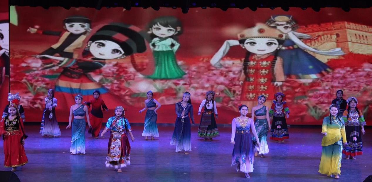 晚会在歌伴舞《想把我唱给你听》中拉开帷幕,晚会节目结合学生专业特色和兴趣爱好,激情火热的歌舞、风趣幽默的小品、慷慨激昂的朗诵、优雅的器乐演奏、引人入胜的话剧、独具匠心的幕布剧和非遗走秀等轮番上演,处处洋溢着我院学子的青春活力。小品《反诈银行》以诙谐幽默的手法揭示骗子五花八门的诈骗手段,提升同学们防电信诈骗的意识;幕布剧《我记得》展现同学们初入大学生活的点点滴滴;话剧《雷雨》将观众带回了那个风雨飘摇的年代;非遗走秀《非遗里的中国》以甘州小调开场,裕固族民歌结尾,同学们身着绚丽的民族服饰向观众们展示了剪纸、兰州水车、保安腰刀等十多项精美的非遗作品;党总支书记郑建勤深情朗诵《旗帜》,他用铿锵有力的声音,为我们展开这关于旗帜的壮丽篇章。晚会在活力四射的舞蹈《最炫民族风》中落下帷幕。