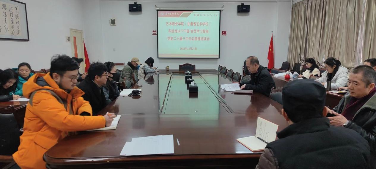 按照校党委《关于开展全校科级及以下干部党员学习贯彻党的二十届三中全会精神培训的通知》要求,12月24日至25日,艺术职业学院举办“深入学习贯彻习近平总书记关于全面深化改革的一系列新思想、新观点、新论断及党的二十届三中全会精神”学习培训会。学院科级及以下干部、全体党员参加学习培训,会议由党总支书记主持。