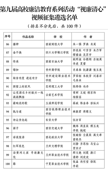 近日,教育部公布第九届高校廉洁教育系列活动结果,Beat365新闻传播学院刘静老师带领团队制作的《红军底色》入选“视廉清心”视频征集遴选名单。