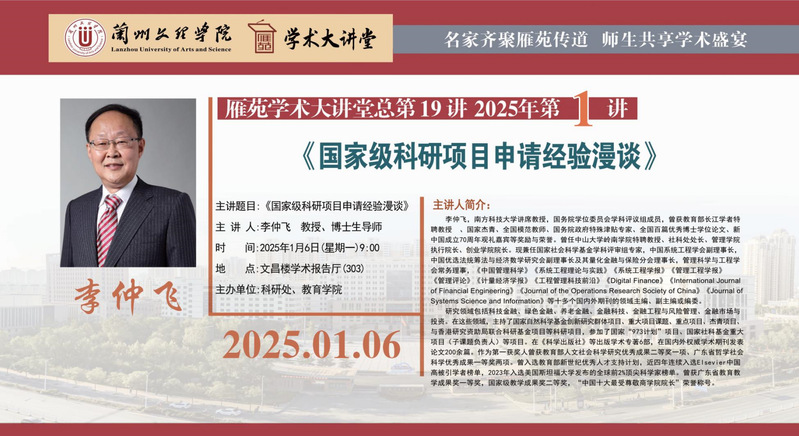 《国家级科研项目申请经验漫谈》专题讲座预告