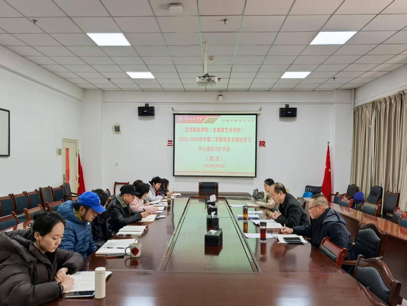2月25日上午,艺术职业学院召开党总支理论学习中心组学习(扩大)会。党总支成员、各党支部书记、各科室、各教研室负责人参加会议。