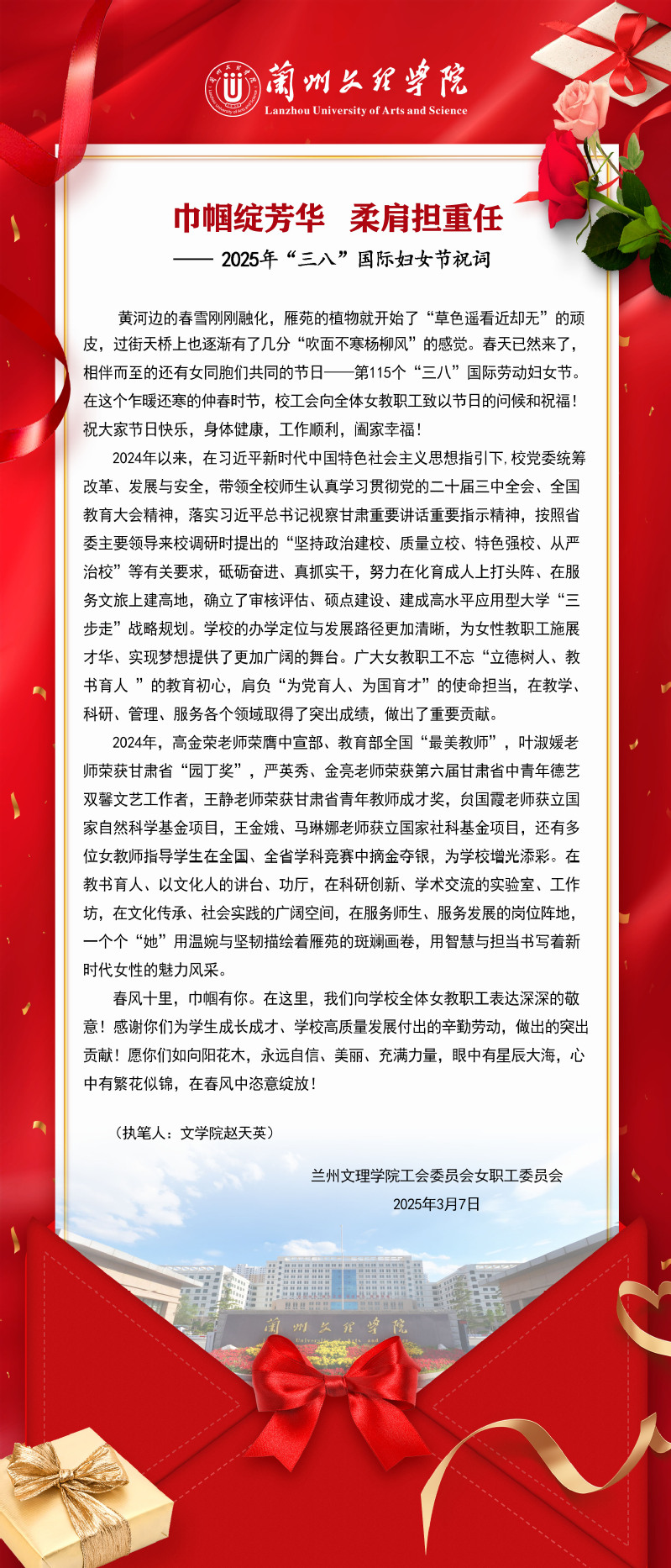 巾帼绽芳华 柔肩担重任——Beat365唯一官方网站2025年“3.8”国际妇女节祝词