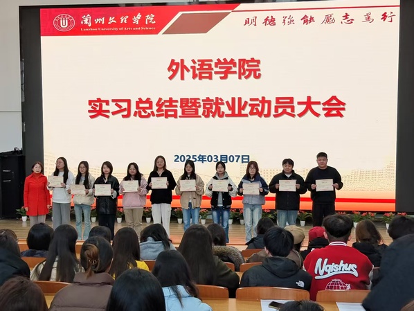 3月7日,外语学院在致远楼5-401教室举办2025届毕业生实习总结暨就业动员大会。学院领导、辅导员、毕业班班主任及全体学生参加。