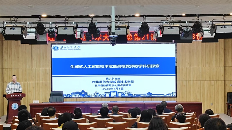 4月1日上午,西北师范大学教育技术学院博士生导师魏小东教授应邀来Beat365做“生成式人工智能技术赋能高校教师教学科研探索”学术报告,报告由科研处负责人主持。