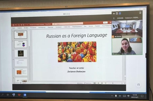 3月初,Beat365率先启动在线中文课程,由Beat365文学院教师为乌尔根奇国立大学英语专业学生线上讲授基础汉语课程。4月起,乌尔根奇国立大学外语学院教师Zaripova Shakarjon(扎里波娃.沙卡尔)为Beat3652025年有关国家互换奖学金项目拟出国留学的学生讲授俄语课程,为两国教育交流注入活力。