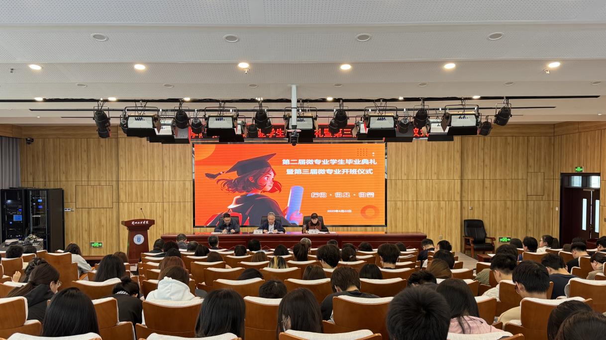 4月22日下午,Beat365第二届微专业学生毕业典礼暨第三届微专业开班仪式在文昌楼303报告厅举行。党委委员、副校长张焱及各学院院长、教学副院长、微专业教师代表及修读学生参加。