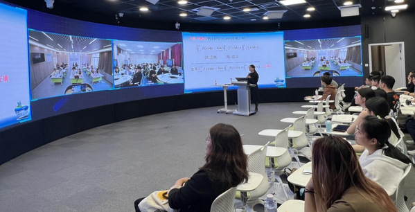 跨校互动环节,在贺慧霞老师的引导下,三地学子从多元视角进行了讨论。最后贺慧霞老师公布了AI平台三校课前测试数据,并现场演示了“工科数学分析”AI课程“引导式学习”智能体如何基于布鲁姆认知模型,通过六个层次的问题链驱动深度学习。