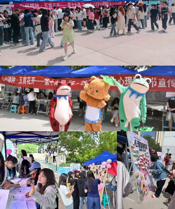 为深入贯彻教育部等十七部门《全面加强和改进新时代学生心理健康工作专项行动计划(2023—2025年)》要求,提升心理育人工作质效,助力学生健康成长,5月22日,由党委学生工作部主办的第十九届“5·25我爱我”大学生心理健康节活动在北校区思源楼广场顺利开展。本届活动以“心田播种 五育花开”为主题,推出系列心理健康教育活动,吸引众多师生参与。