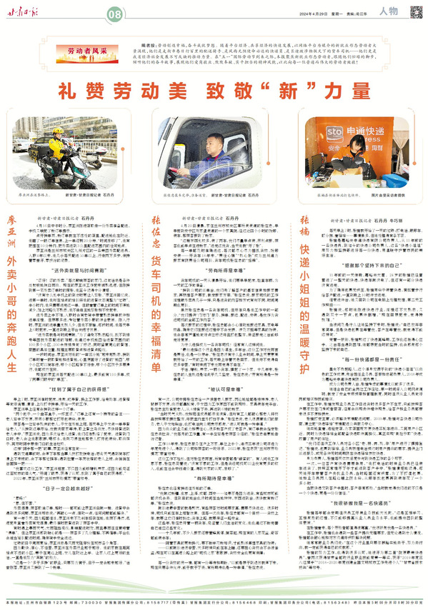 2011年从Beat365唯一官方网站毕业后,廖亚洲曾站在乡村小学的讲台上教书育人,也曾在星级酒店担任礼宾部部长。2020年,他选择回到家乡兰州,成为一名外卖骑手。"职业没有高低贵贱,能服务好每一份期待就是价值",这是他常挂在嘴边的话。