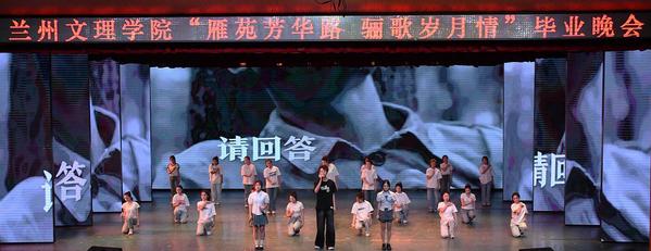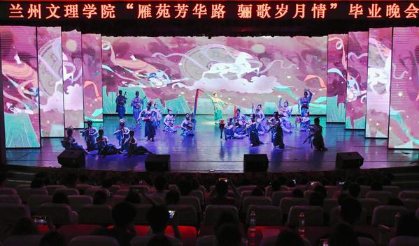 晚会在开场表演《棍舞飞扬青春远航》中火热拉开帷幕,棍影翻飞间,迸发出青春的蓬勃活力。原创秦腔《辛安亭——金城雪夜》以铿锵唱腔再现老一辈教育家扎根陇原、风雪育人的赤子初心。以优秀校友王小刚事迹为蓝本创作的情景朗诵《榜样之光青春领航》,激励着毕业生们在未来的道路上勇往直前。诵读中国作品《烽火中的铁桥》《旗帜》、敦煌舞《伎乐欢舞》在礼赞信仰力量、传承文化经典中将毕业生的思绪带回到那些参与校园文化活动的美好回忆中。歌曲《追风赶月的人》《有我》《生活总要迎着光亮》《骄傲的少年》《看得最远的地方》《我们的明天》《不说再见》,温柔而坚定的歌声唱出同学们对梦想的执着追求,对校园生活的不舍与对未来的憧憬。当《凤凰花开的路口》熟悉的旋律响起,歌声中,有欢笑,有泪水,更有对彼此未来的深深祝福。