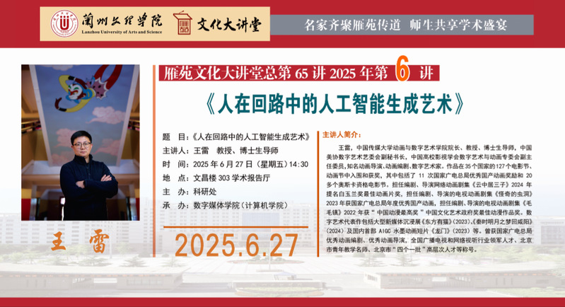 雁苑文化大讲堂预告:《人在回路中的人工智能生成艺术》