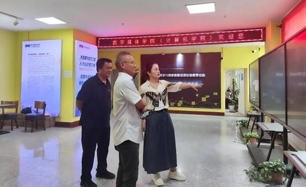 调研期间,王志刚教授在教学负责人的陪同下,实地考察了学院学科建设成果展、学生创新工作室、毕业设计作品展及数字媒体与智能信息教学实验室,深入了解学院学科建设的实际成果与创新实践。