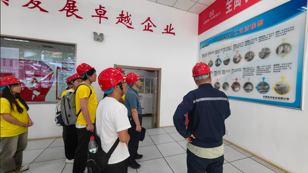 在白银市中核华原钛白公司,团队参与安全培训、参观展厅,了解企业情况;深入车间观摩生产线,了解技术及副产物;参观环保区,座谈获解答。当日采集1公斤硫酸亚铁样品,为后续实验做好准备。