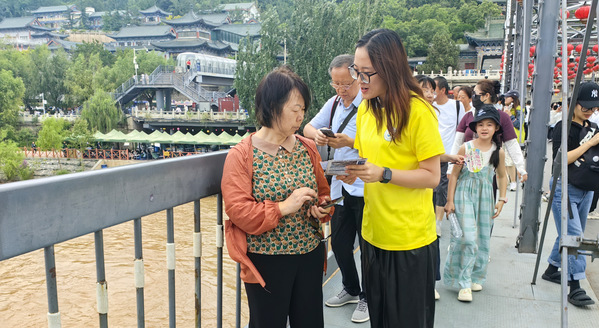 随后,团队赴黄河兰州段中山桥附近开展水样采集与环保宣传。队员们在不同点位采水样,记录坐标、时间及水体状态;同时向市民游客发科普手册,讲解黄河保护知识,呼吁共同守护。市民王先生称赞同学们的行动,表示:“没想到年轻人这么关注黄河保护,我们更要从自身做起,给后代留一条清澈的河。”