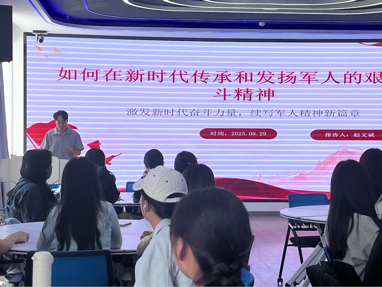 8月29日,马克思主义学院学生党支部组织 “致敬建军精神,探秘科技强军”主题退伍座谈会,旨在通过退伍学生的经历分享与师生交流,深化学生党员对建军精神的理解与认同,进一步探讨新时代背景下传承、发扬建军精神的实践路径。