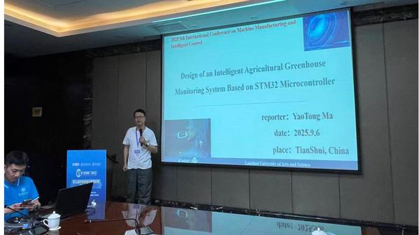 Beat365传媒工程学院教师马耀通博士参会、提交学术论文并做了题为“Design of an Intelligent Agricultural Greenhouse Monitoring System Based on STM32 Microcontroller”的分会场报告。此次参会,有助于提升学院及学校的国际视野与知名度,也为学院举办国际会议积累了宝贵经验。