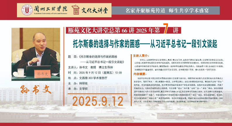 雁苑文化大讲堂预告:《托尔斯泰的选择与作家的困惑——从习近平总书记一段引文谈起》