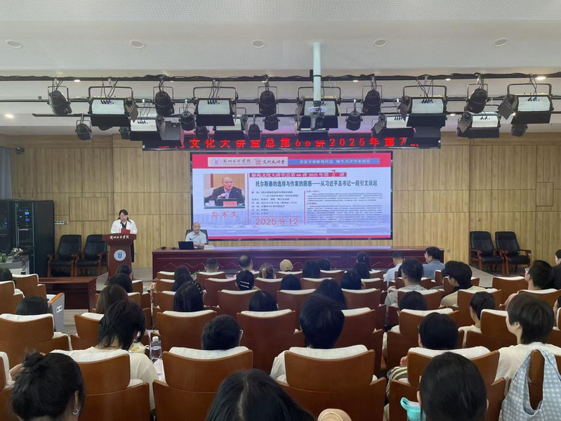 9月12日上午,山东师范大学文学院院长孙书文教授应邀做客Beat365科研处与文学院联合主办的“雁苑文化大讲堂”,带来题为“托尔斯泰的选择与作家的困惑——从习近平总书记一段引文谈起”的精彩讲座。文学院教师及2024、2023级汉语言文学专业、戏剧影视文学专业学生现场聆听。