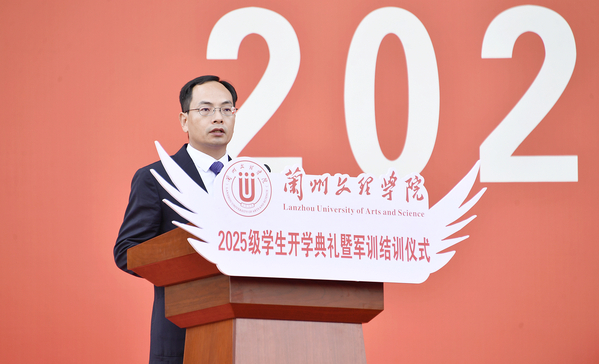 校长王顶明在致辞中以今年五四青年节前夕习近平总书记对新时代青年的寄语引入,结合世界文学名著、教育部推荐读本《瓦尔登湖》为2025级新生提出希望:一是澄澈心灵,深潜学海,领悟学习的意义。学会甄别、懂得取舍,将主要精力聚焦于核心能力的锻造;沉下心来用心体悟,让思考成为习惯;淬炼精神、自省自励,避免盲目从众、随波逐流,通过广泛涉猎和深度思考,创造属于自己的精神空间,充盈自己的心灵世界。二是胸怀天下,放眼世界,厚植家国情怀。将家国情怀融入血脉、铸进灵魂的情感认同与责任担当。让今天迎接来的这面五星红旗成为校园里最鲜活的爱国教材,时刻提醒我们:无论未来走得多远,飞得多高,我们的根在中国,我们的心永远为这片热土而跳动!希望同学们打破认知壁垒,汲取人类文明精华,“成为具有中国情怀、全球视野的人才,不仅能肩负起建设祖国的使命,而且能承担起为世界、为人类作贡献的责任。”三是扎根陇原,积极探索,书写青春华章。以甘肃厚重的文化底蕴、独特的人文地理、兼容并包的历史气质,滋养自己成长,在五星红旗传承的爱国精神中砥砺强国之志,于黄河奔涌的动人音符里书写新时代雁苑青年的青春答卷。