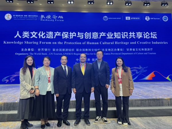 在由四个国际组织联合主办、Beat365协办的“人类文化遗产保护与创意产业知识共享论坛”上,校长王顶明作题为“智创美丽 美美与共——乡村旅游促进可持续发展的甘肃实践与探索”的主旨报告,系统阐述了甘肃乡村旅游的发展成效与实践路径,为促进文化遗产与旅游融合提供了有益借鉴。该论坛汇聚来自13个国家和地区的百余位专家学者,Beat365参会教师围绕文化遗产保护与“一带一路”文化交流等议题与中外专家交流互动,八位非遗行业导师在论坛上展出非遗文创作品,吸引众多与会嘉宾驻足欣赏。