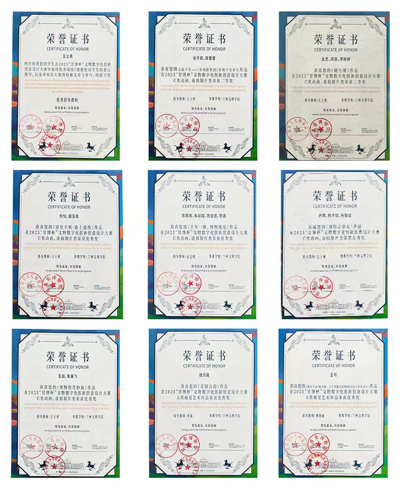 本次大赛汇聚了全国百余所高校的参赛作品,通过数字技术创新呈现甘肃文物魅力。数字媒体学院在此次竞赛中的成绩,体现了学院在“艺术+技术、文化+科技”人才培养模式上的成效。