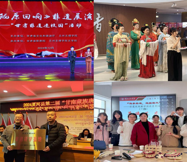 校政企与校校合作。校政企协同:与甘肃省文旅厅、各地市文旅局、省非遗保护中心、读者出版集团等建立稳定合作关系,共同开展项目研究、人才培养与文化交流;校校合作:与国内多所高校及研究机构保持学术交流,教师多次参加国内外高水平学术会议。非遗保护专业的建设经验成为全国多所院校借鉴的“兰文理样板”,吸引了呼伦贝尔学院、北方民族大学等高校前来考察交流。