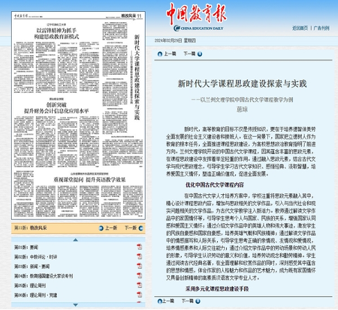 课程思政深度融合。将价值塑造贯穿知识传授与能力培养始终。深度挖掘各专业课程蕴含的思政元素,如中文学科的家国情怀、非遗学科的工匠精神、戏剧影视学科的时代记录功能。专业教育与思政教育同向同行,戏剧影视文学专业获评甘肃省课程思政示范专业,相关成果在《中国教育报》等权威媒体发表。