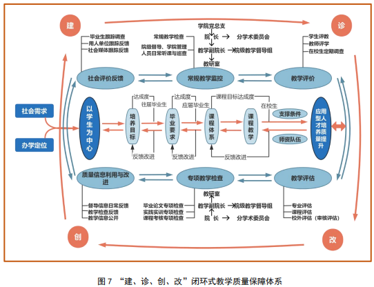 学院遵循“学生中心、产出导向、持续改进”的OBE理念,创新构建“建、诊、创、改”闭环式教学质量保障体系。通过建立健全质量标准体系,定期开展教学质量诊断,创新突破瓶颈问题,持续推进改进提升,形成螺旋上升的质量提升机制。