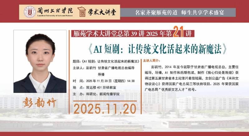 雁苑学术大讲堂预告:《AI短剧:让传统文化活起来的新魔法》