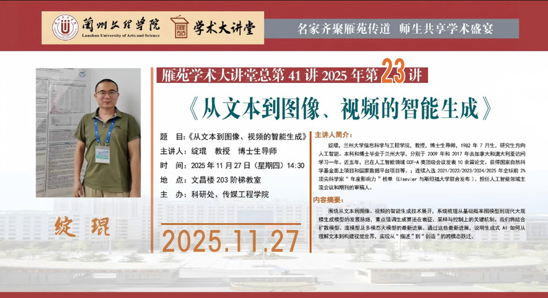 雁苑学术大讲堂预告:《从文本到图像、视频的智能生成》