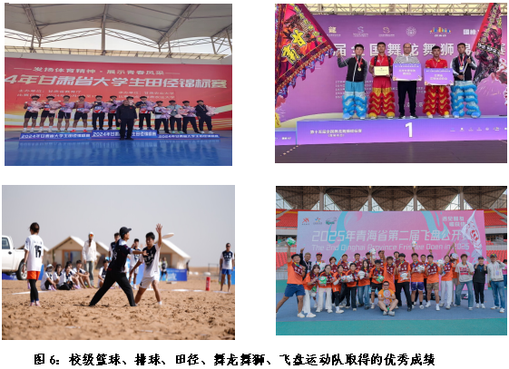 在赛事实践与社会服务方面,学生在各级体育竞赛中屡创佳绩:近四年获省部级以上奖项11项,其中国家级5项(全国舞龙舞狮锦标赛竞速南狮第一名、“舞动中国-排舞联赛” 总决赛特等奖等),省级奖项 18 项;年均开展社区健身指导、全民健身知识讲座、残疾人体育赛事辅助等活动 400 余次,2021年组建的“广场舞推广服务社会实践团队” 获“甘肃省大中专学生暑期社会实践优秀团队”称号,实现“实践育人”与“社会服务”双向赋能。