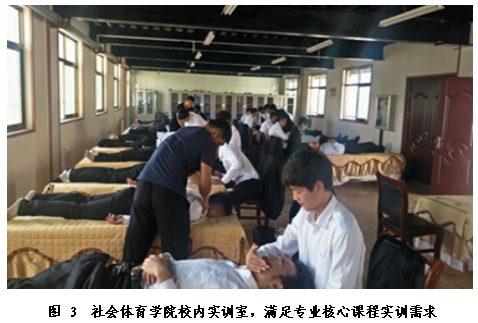 课堂教学聚焦专业核心能力,开设《健康评价与运动处方》、《健身理论与指导》、《体育市场营销》等核心课程,强化专业基础与岗位能力衔接。推行 OBE 理念导向的“项目式教学”“角色互换教学”“仿真式教学”,如《推拿按摩》课程以“真实客户需求”为场景,学生分组完成“体质评估-手法实操-方案制定”全流程训练。