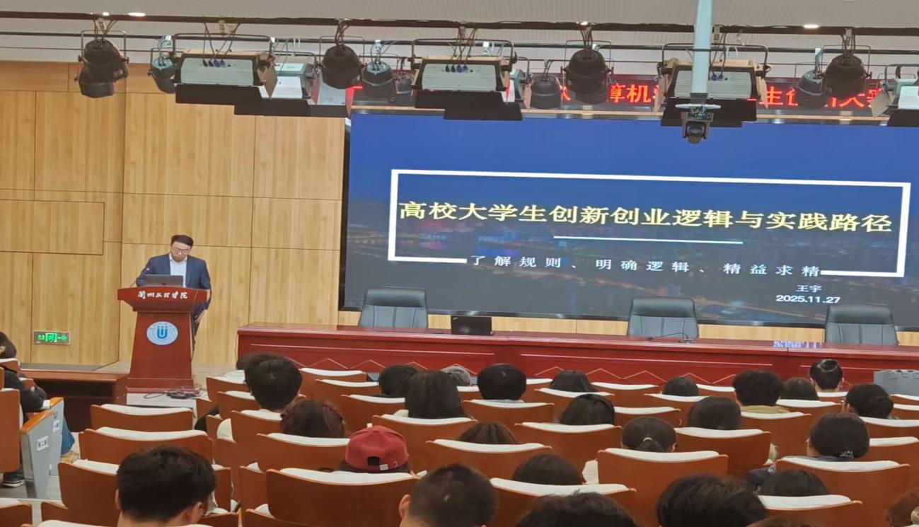 会上,教育部中国国际大学生创新大赛国赛评委、甘肃省人工智能学会秘书长王宇应邀作题为《高校大学生创新创业逻辑与实践路径》的专题报告,为学生提供了专业的赛事指导与实践建议。