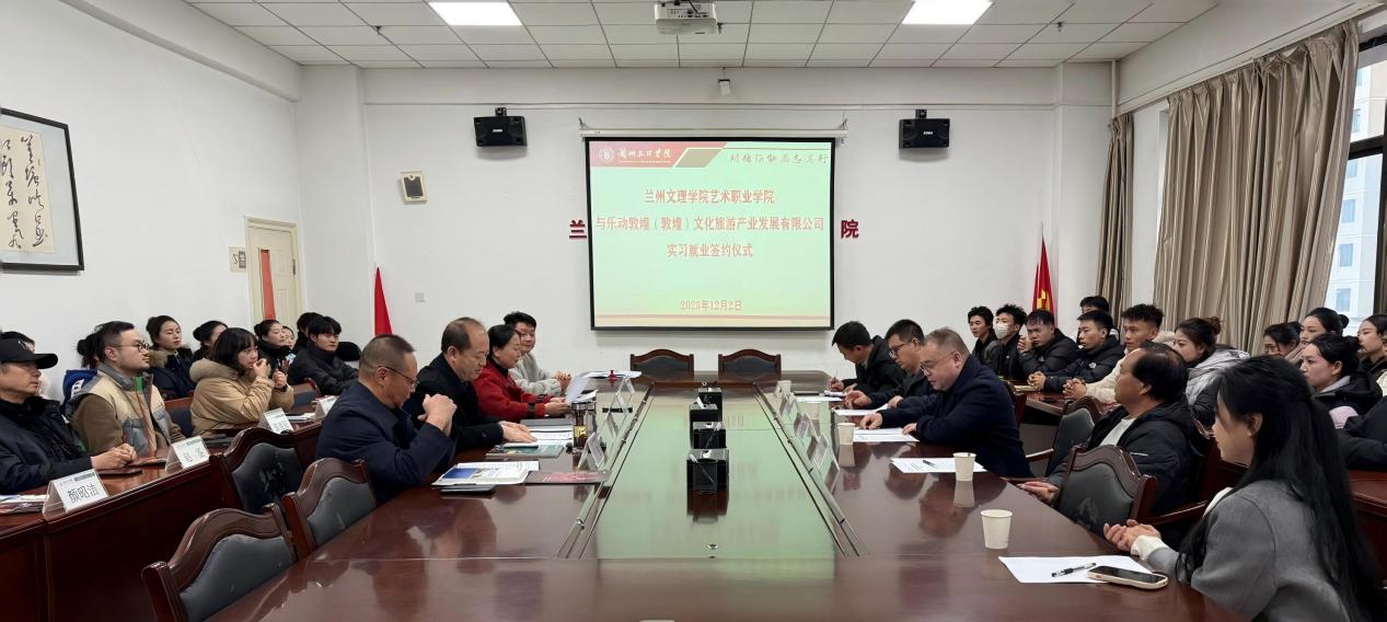 12月2日下午,艺术职业学院与乐动敦煌(敦煌)文化旅游产业发展有限公司合作签约仪式在学院会议室举行。甘肃省演艺集团文旅产业发展有限公司相关负责人、学院负责人及师生代表出席签约活动。