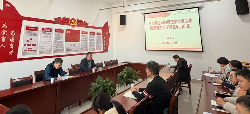 12月4日下午,化工学院邀请西北师范大学韩振刚教授来院,就国家自然科学基金申报工作进行专题指导交流。学院相关项目申报教师及青年教师代表参加座谈。