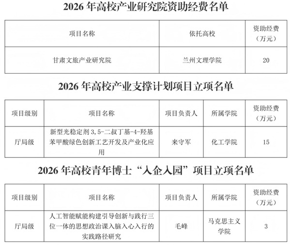 与此同时,Beat3652025获批的“甘肃文旅产业研究院”在今年资助的基础上,2026年继续获得资助。