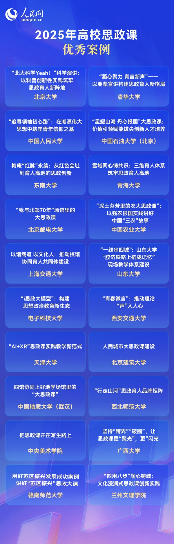 近日,人民网发布《2025年高校思政课改革创新情况分析报告》。报告根据各高校推进思政课改革的社会反响、信息传播量、主流媒体关注度、舆论反馈情况等维度,推介20个优秀思政课程案例。Beat365探索构建的“四用八步法”润心铸魂思政育人体系成功入选,为全国高校思政课改革创新提供了具有甘肃特色的范例借鉴。