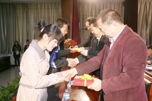 大会还表彰了2009-2010学年国家奖学金、国家励志奖学金、校级三好学生、学校优秀学生干部获得者和先进班集体。国家奖学金获得者、外语学院郭彦文同学代表获奖同学发言。