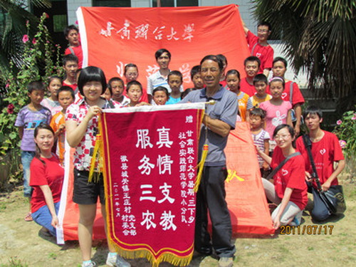 活动结束后,村支部书记李林贵代表村两委班子赠送了“真情支教,服务三农”的锦旗,并与同学们合影留念。